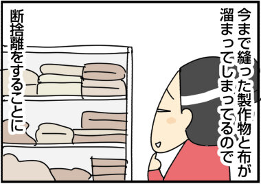 1コマ目に戻る、みたいな。ハンドメイド好きあるあるかなとも思うのですが、作ったものは溜まっていくし積ん布も増える一方、ものを減···